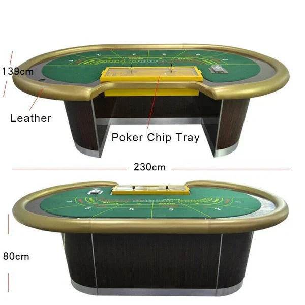 Measuring 8 feet by 4 feet, the Goldheck Baccarat Table follows professional casino standards, making it the ideal choice for high stakes baccarat games. This table is also fully customizable, allowing players to personalize colors, materials, and accessories to match their gaming ambiance perfectly.