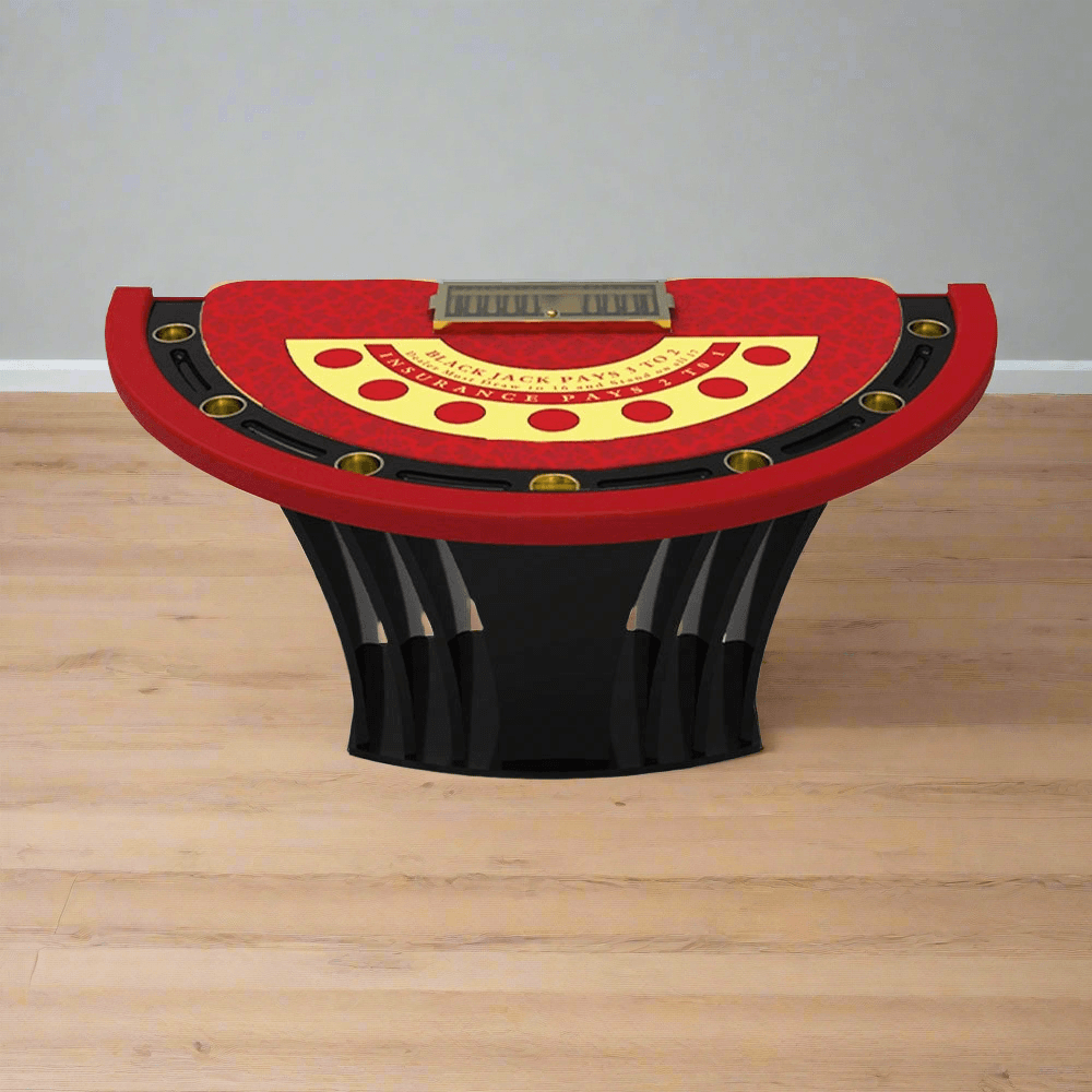 The Ace High Blackjack Table by Acesfull combines modern aesthetics with premium craftsmanship, available in bold red or sleek black variants. Featuring a futuristic base, high quality felt, and luxury accessories like golden cup holders and chip trays, it delivers a top tier gaming experience.