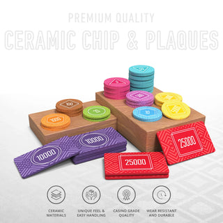 Our featured ceramic poker chipsets have gained popularity and trust among poker lovers throughout Qatar. You can choose from various sizes, weights, and plaque options, ensuring you find the perfect chips to complement your gaming setup. Whether you're a casual player, a tournament organizer, or a passionate collector, these ceramic chips are crafted to exceed your expectations.