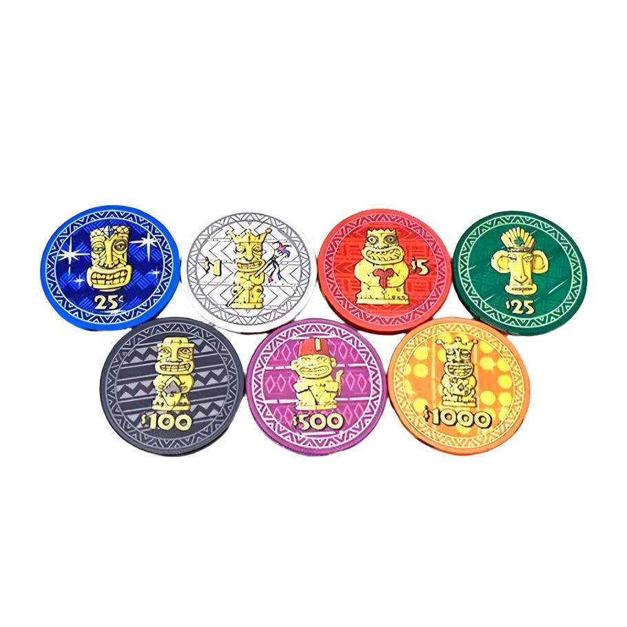 Ceramic Chips: Tiki Kings series with vibrant island-inspired artwork