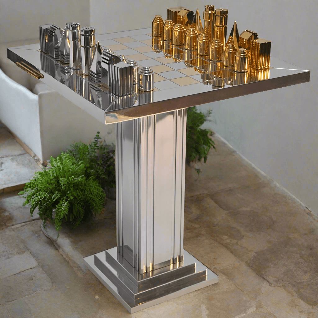 One Stainless Steel Chess Piece Set: Carefully weighted and elegantly polished, these pieces match the table’s sleek finish and offer a premium tactile feel.