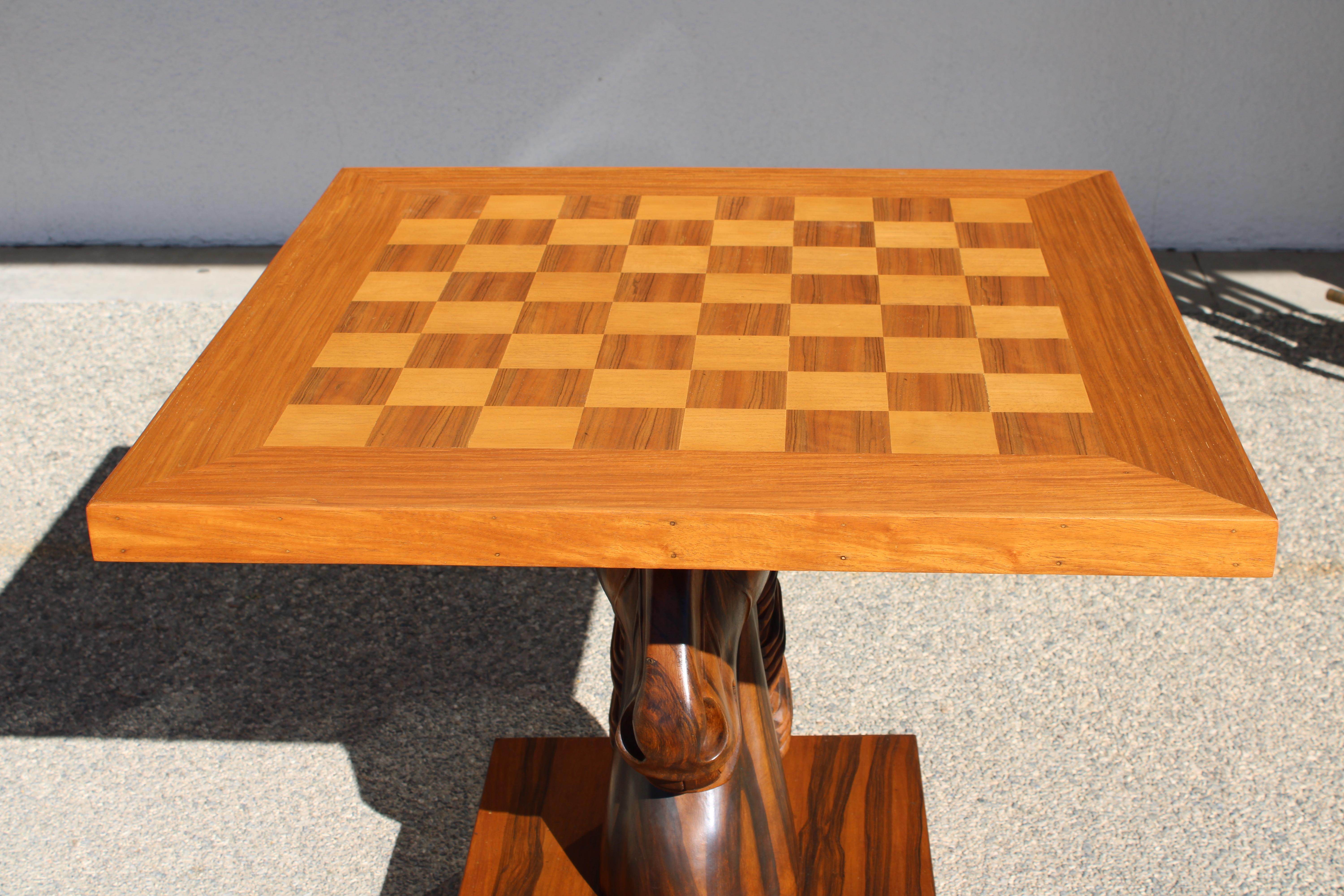 Command the room with the majestic presence of the Orion Chess Table: a fusion of timeless gameplay and artful design. Featuring a refined 3 ft by 3 ft square tabletop in a rich wooden finish, supported by an eye-catching luxury knight-shaped base, this table reimagines the classic chessboard as a bold statement piece.