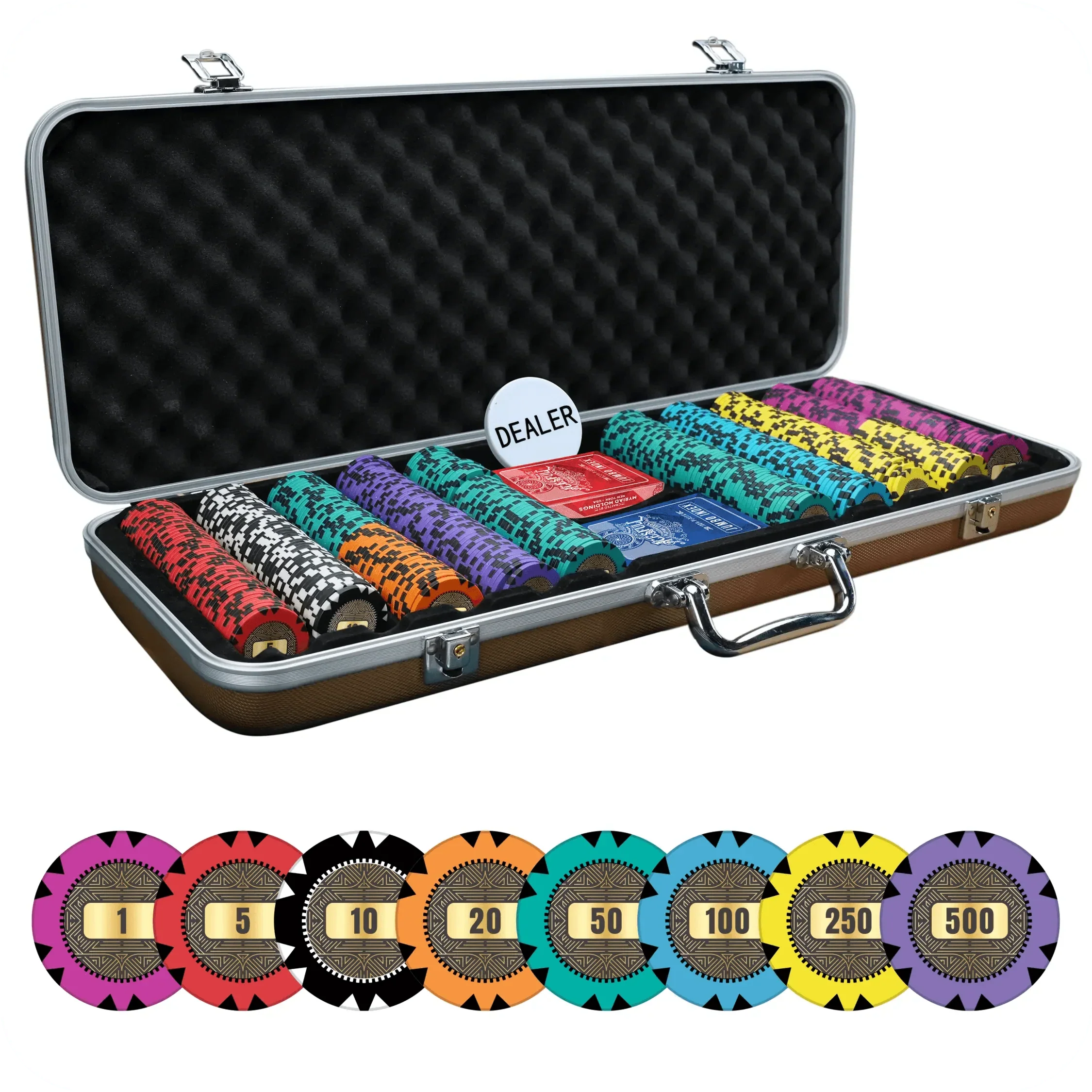 This poker chipset comes in two sizes: 300 pieces or 500 pieces, allowing you to select the ideal quantity for your poker needs. The GR series features an elegant gold bullion design that adds sophistication to any poker night, making it suitable for players of all skill levels.