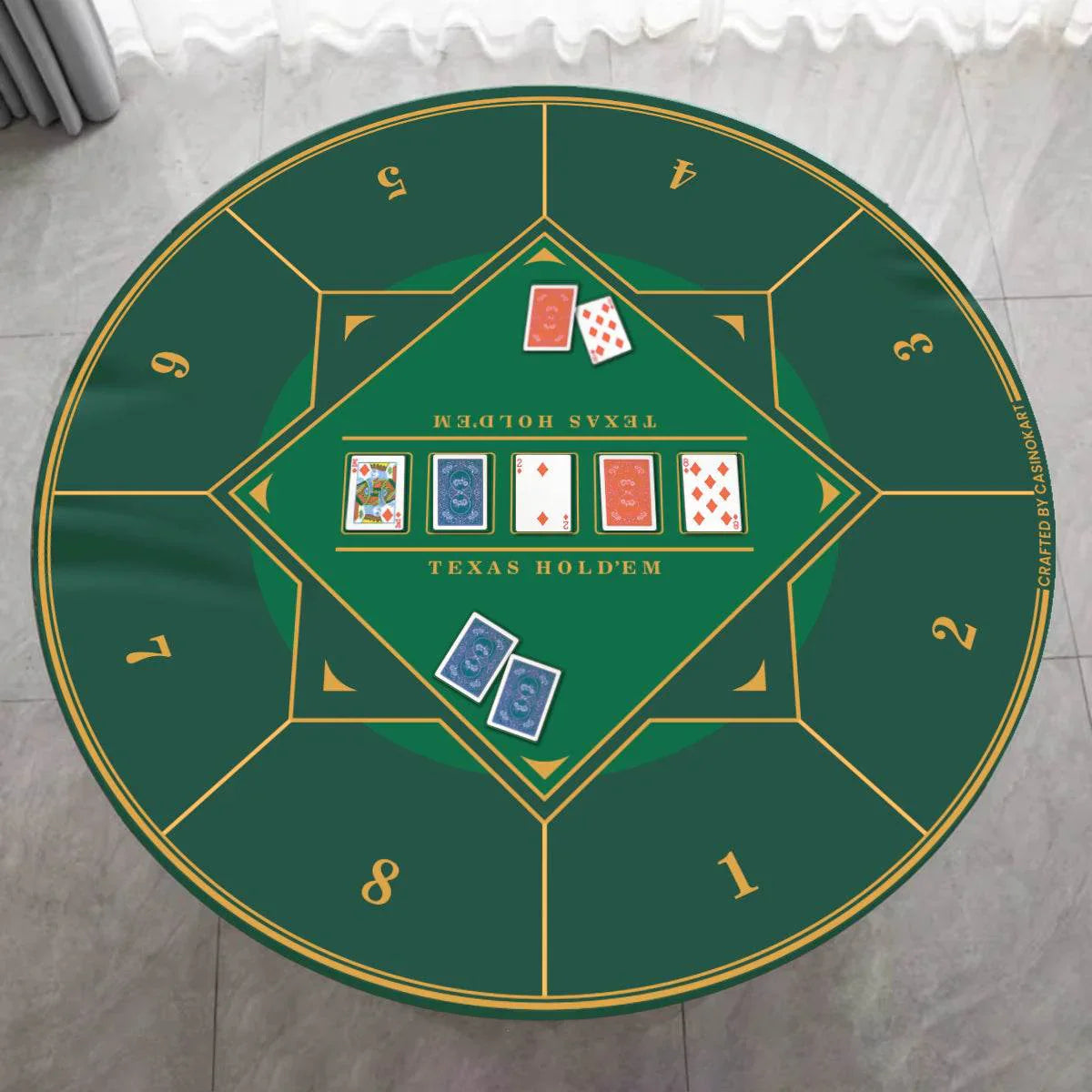 Created for gamers who want a mix of quality and elegance, this circular mat provides a spacious playing area, perfect for poker nights or family game sessions. At 4 feet in diameter, it’s designed to fit round tables comfortably, giving players an ideal surface that makes card dealing smooth and enjoyable.