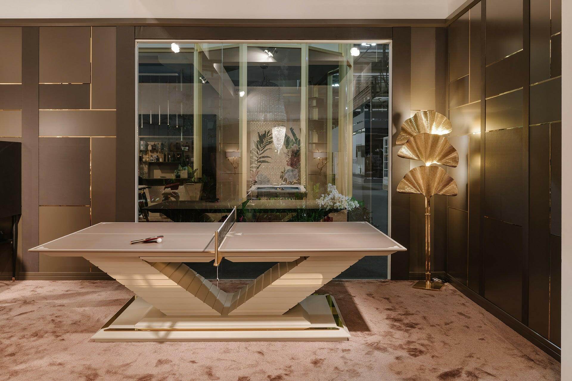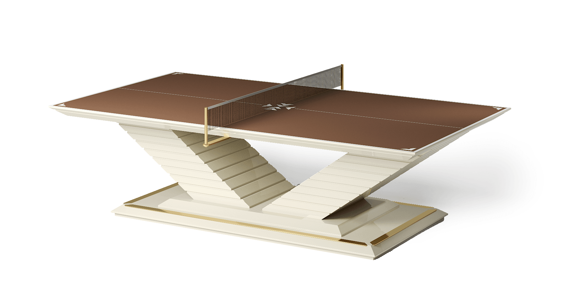 The Champion Table Tennis Table boasts a rectangular shape and comes in an elegant cream and gray color combination, offering a contemporary look that complements any space. Built with a modern and futuristic base, it ensures stability and style, making it a standout feature in homes, clubs, and sports centers.